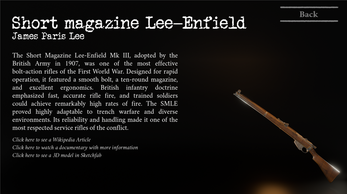 Step into a curated virtual museum dedicated to the weapons of the First World War. This interactive educational space allows visitors to explore historically accurate firearms, artillery, and military vehicles used between 1914 and 1918, presented with a focus on context, design, and historical impact.